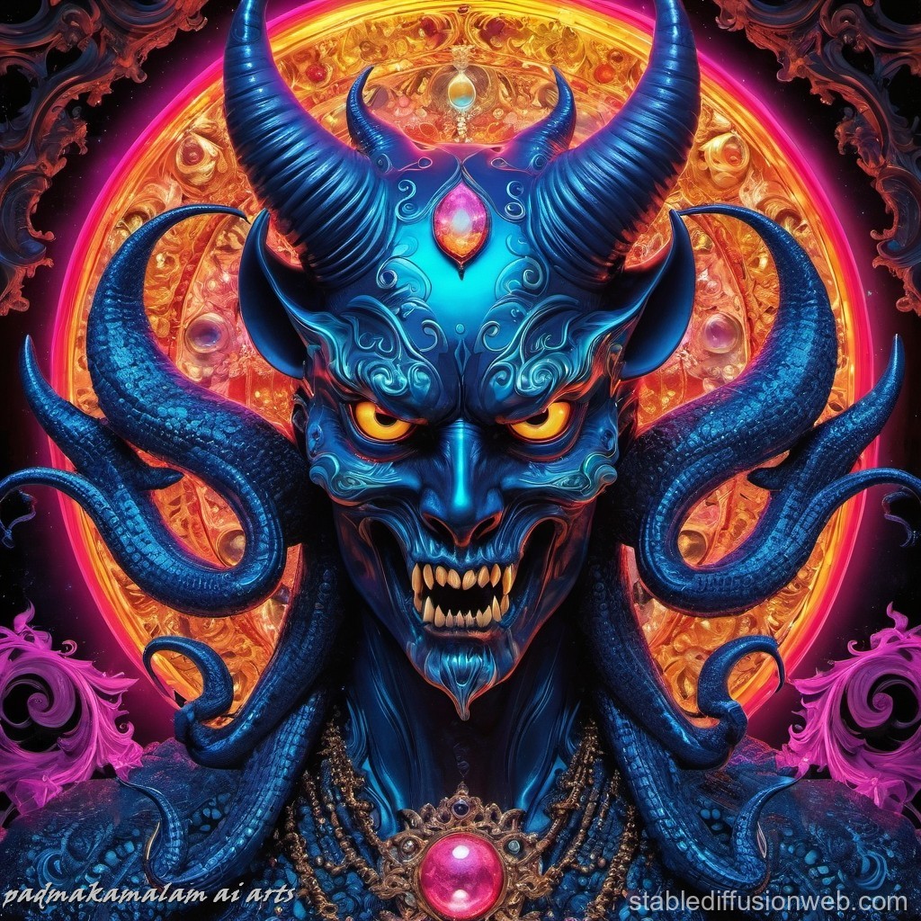 AI PROMPT : Create a triple eyed double irished mega devil in a scary cosmic neon world - STABLE DIFFUSION ONLINE - WITH DIFFERENT OPTIONS